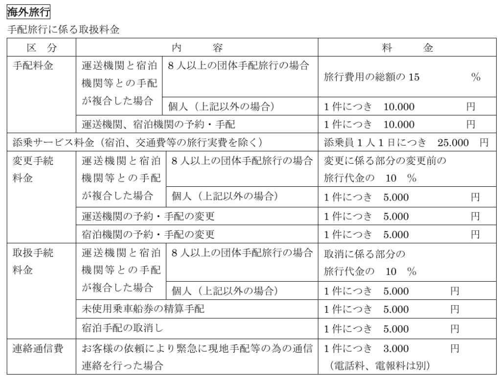 旅行業務取扱料金